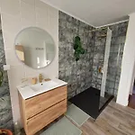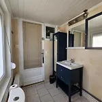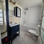 Cet établissement Maison Familiale De Vacances comprend une salle de bains avec une baignoire, une toilette séparée et une douche. Un sèche-cheveux et des serviettes sont fournis pour plus de confort.